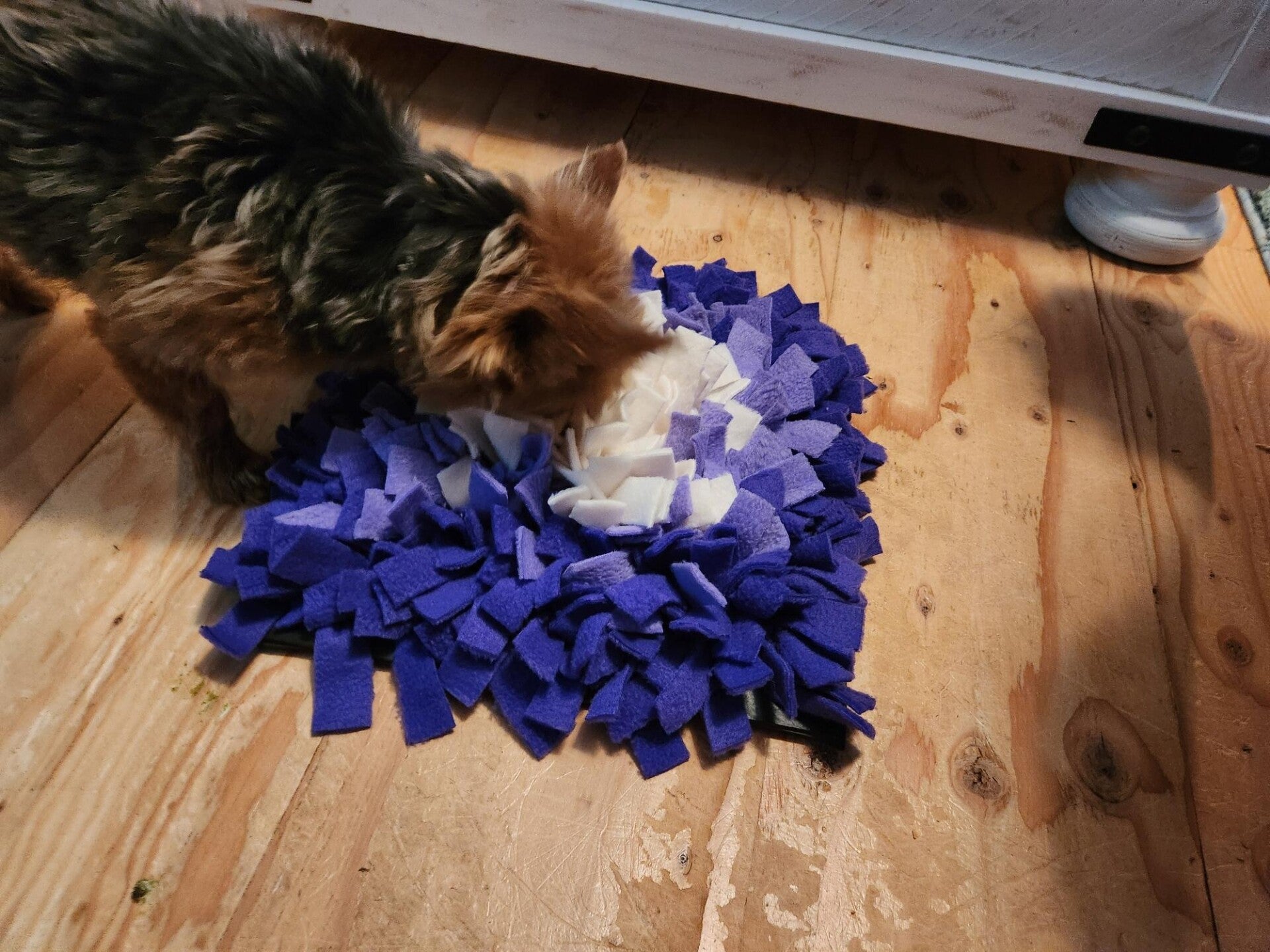 Designed for smaller dogs or light-to-medium chewers, The Pocket Pup Snuffle™ is a lightweight fleece mat packed with playful folds and one hidden treat pocket for surprise bonuses. Portable, packable, and paw-sitively fun.