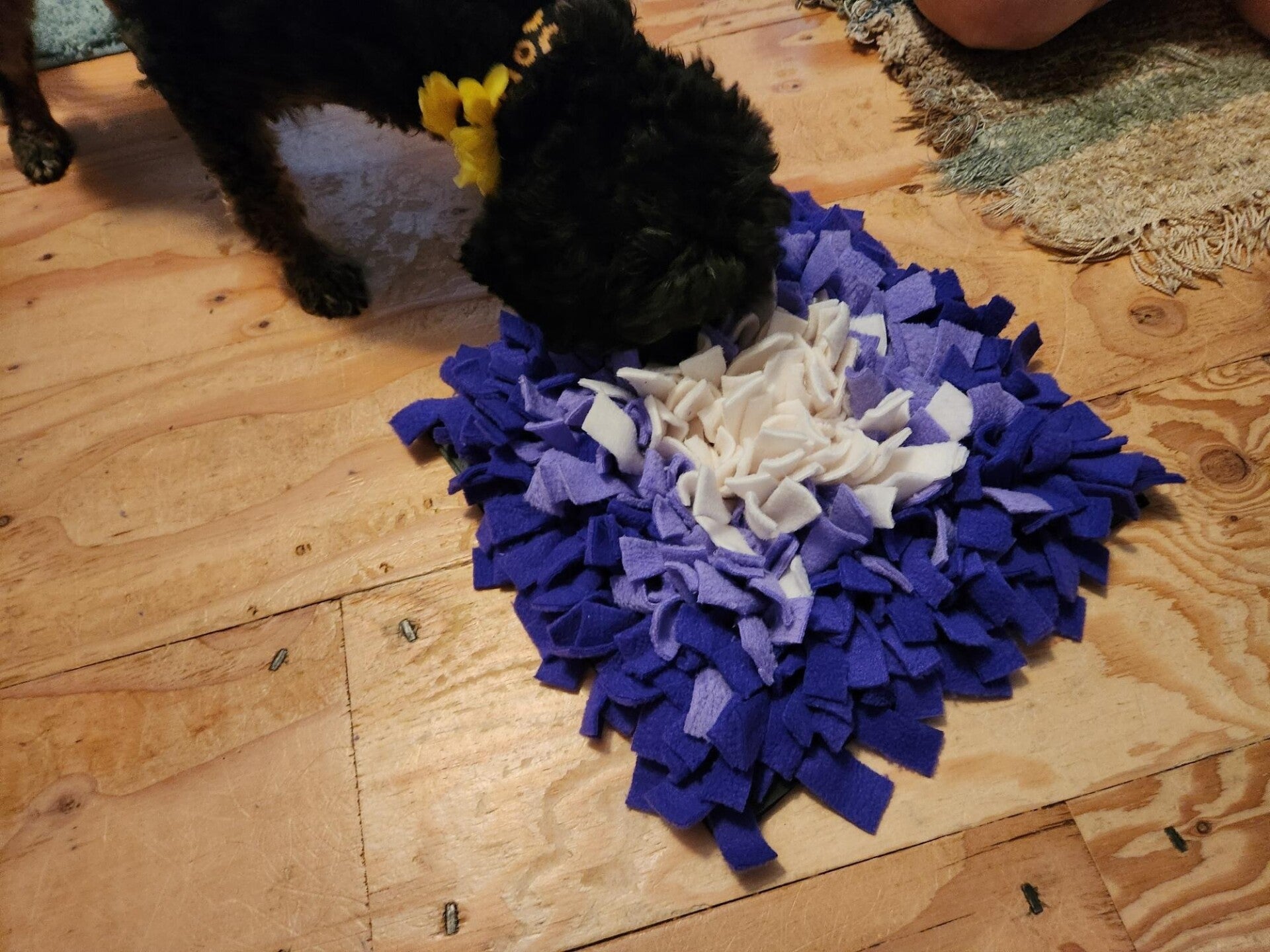 🎨 Fleece colors and patterns vary with each creation — every mat is a surprise party for the nose! Custom color combos available upon request.